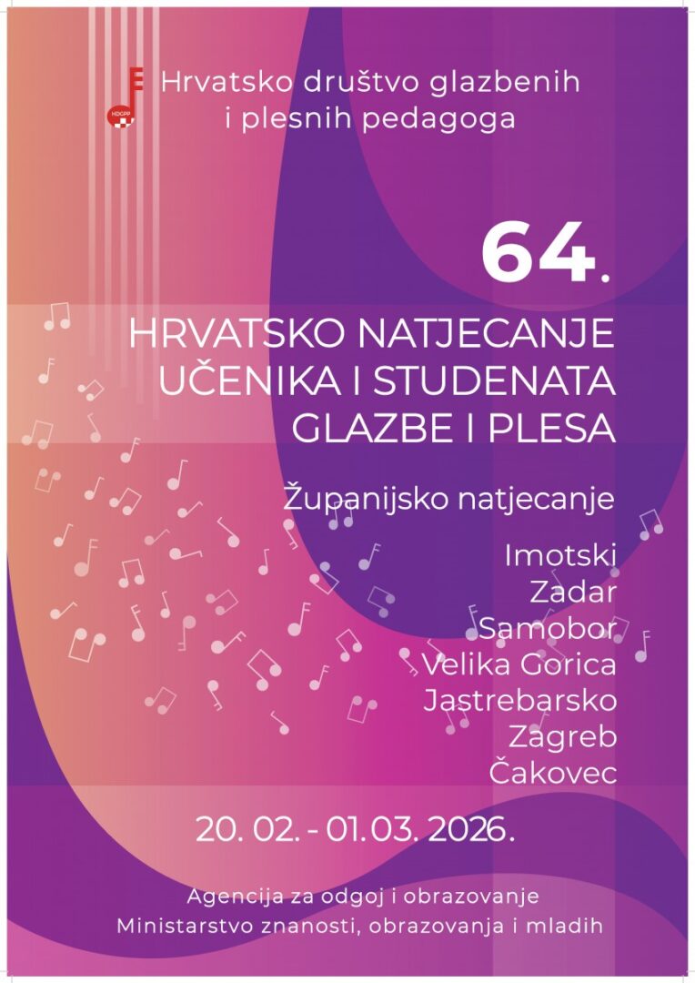 Na 64. županijskom hrvatskom natjecanju učenika i studenata glazbe i plesa u organizaciji Hrvatskog društva glazbenih i plesnih pedagoga (HDGPP) koje se održalo u Zadru i Jastrebarskom 21.-23. veljače 2026. godine učenici naše škole osvojili su vrijedne nagrade: